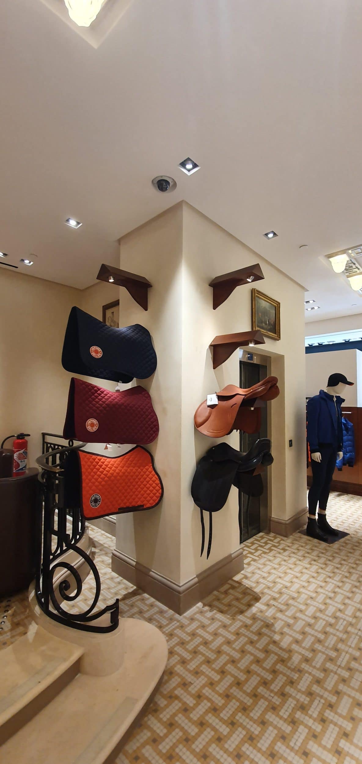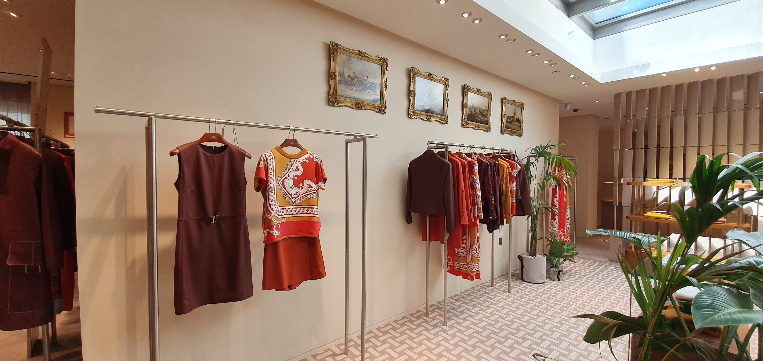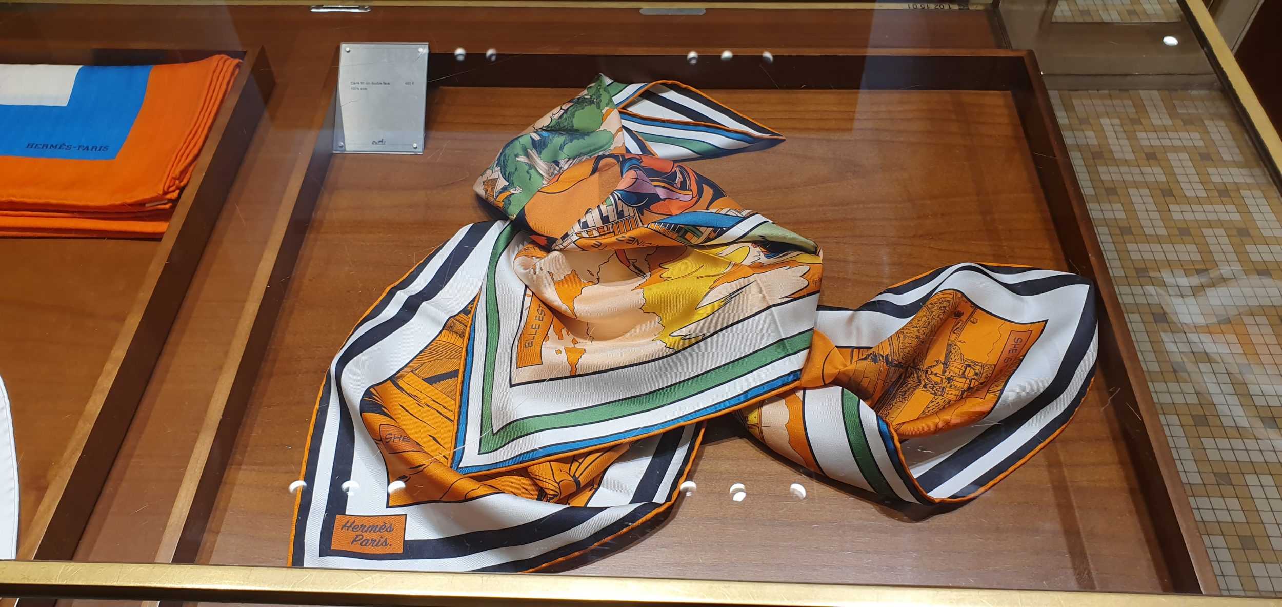 Es entonces cuando comienza el verdadero trabajo. Hay un vendedor por metro cuadrado, así que sólo tienes que mirar a alguien para que te atienda. Las plazas forman parte de los emblemas de la marca y se benefician de una ubicación central (e histórica), justo al lado de la entrada. Antes solo había 4 expositores para la seda, pero hemos pasado a 6, así que por lo demás es un paraíso de los pañuelos.
