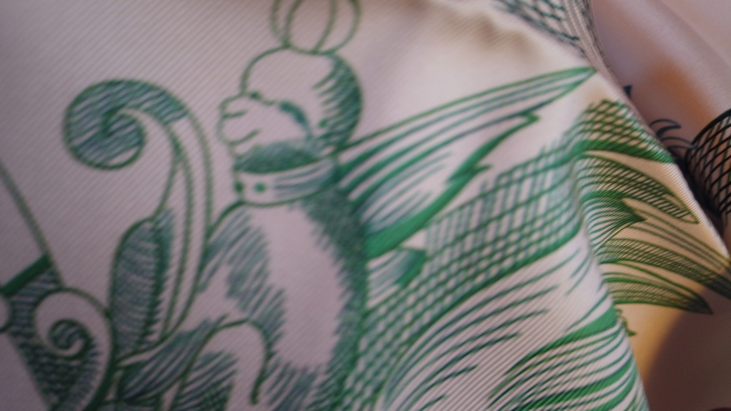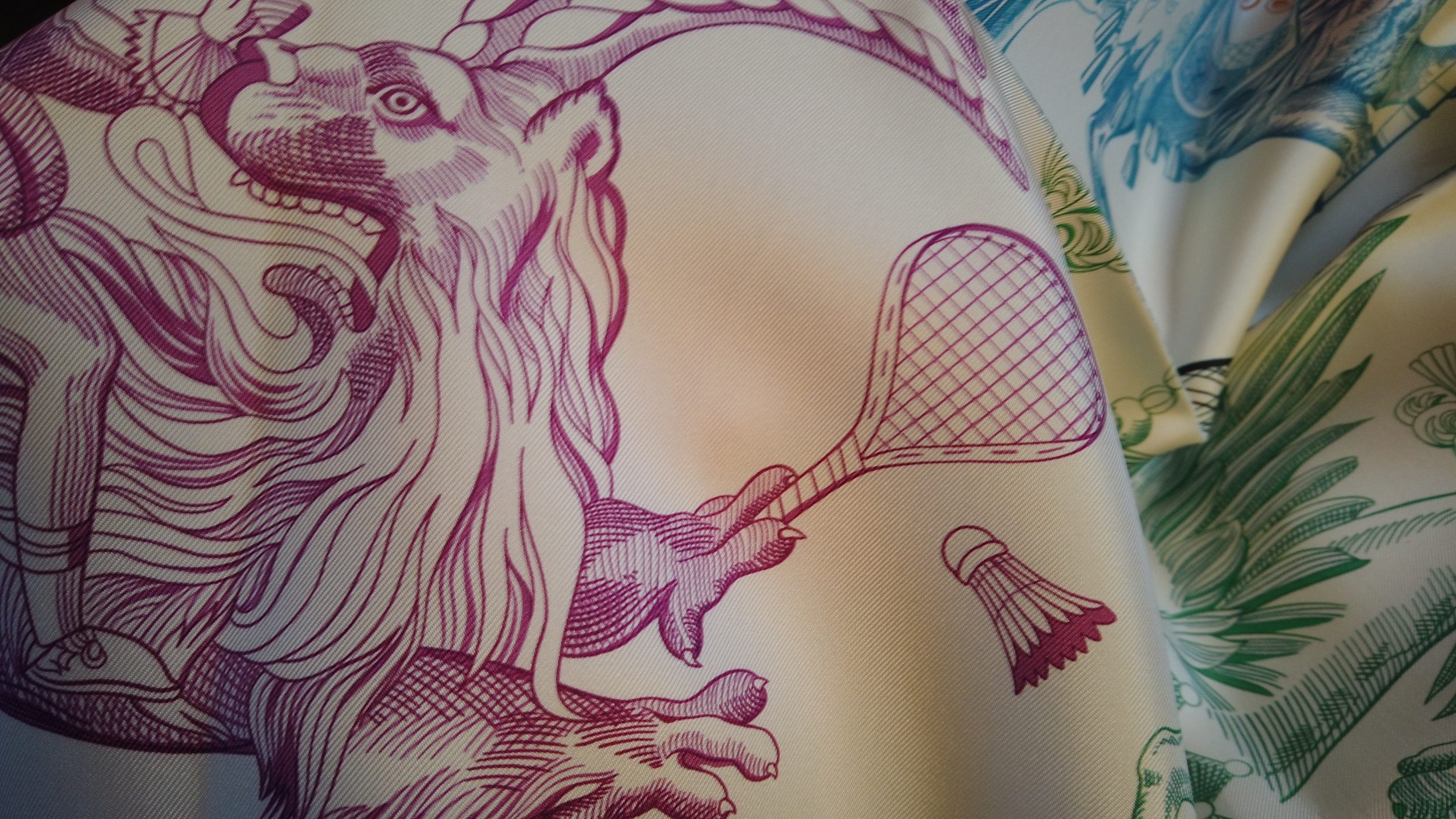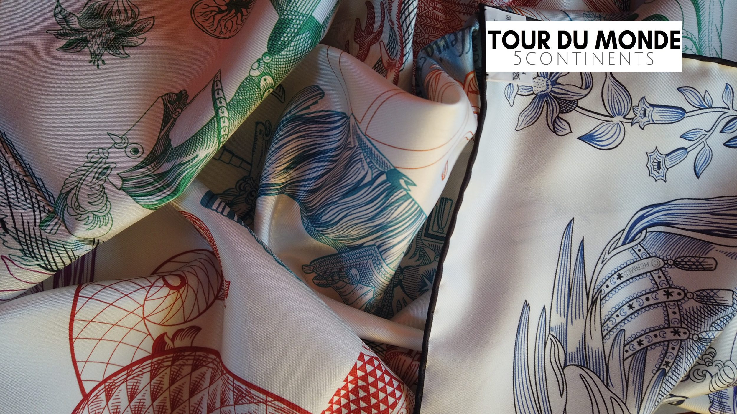 El informe no sólo era emocionante, sino que también revelaba que Hermès había producido, por primera vez, cuadrados de doble cara mediante una innovadora técnica de impresión. Son, por el momento, los únicos que saben cómo hacerlos. Se ofrecen tres modelos de mujer + uno de hombre, entre ellos uno de Gustavo Oliver.