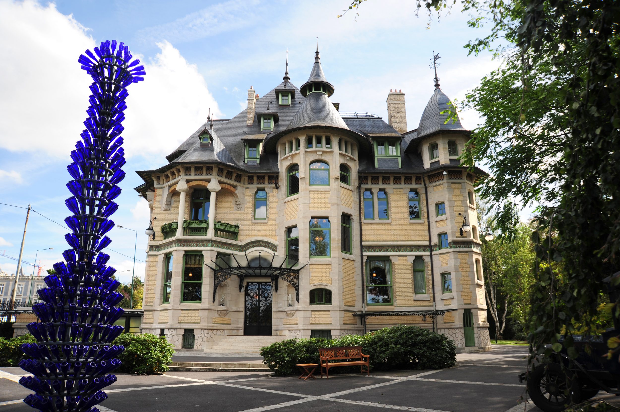 Por suerte, JB optó por esta visita porque en ese momento no sabía qué era y por qué era necesario visitarlo, pero preferí esta visita a las bodegas. Esta villa ha sido abandonada y está muy dañada. Ocupada y casi destruida (los okupas destruían el parquet para calentarse), Paul-François Vranken, presidente de Champagne Vranken, compró la villa en 2004 y emprendió las obras de restauración durante cinco años. La villa es espléndida, una obra maestra del Art Decó y el Art Nouveau, pero la visita guiada fue excepcional. Era la primera vez que disfrutaba tanto de una visita guiada. Para una villa pequeña, además. También en este caso, la casa pidió a la guía que eligiera un acento aristocrático, pero al menos no era altivo.