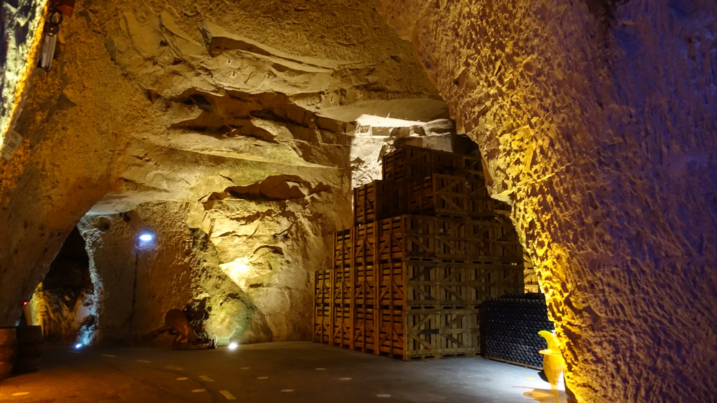 Hoy en día, hay 200 km de bodegas y caleras en la región, y millones de botellas de champán envejecidas.