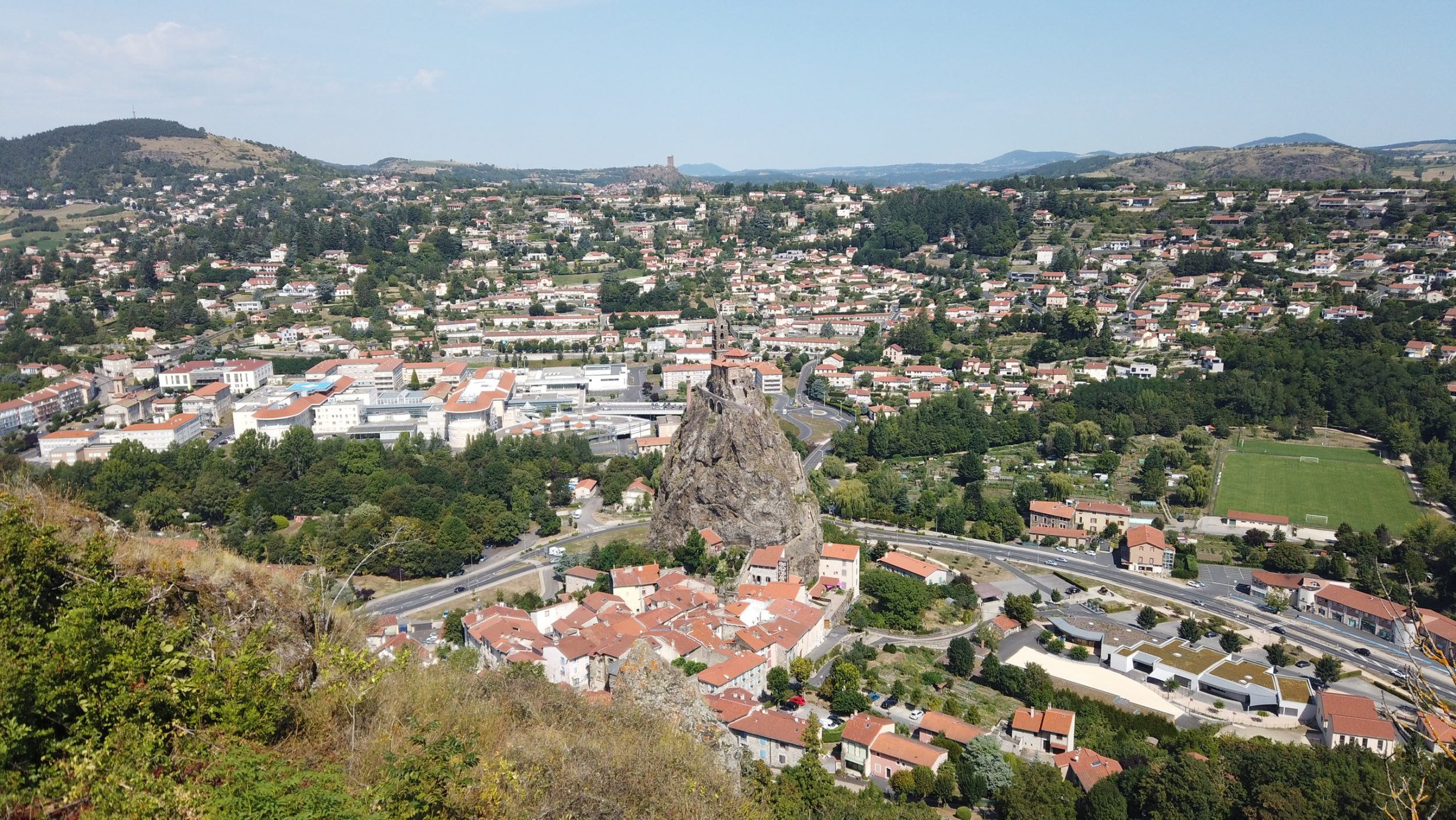 Desde la cima, se puede ver claramente la Chapelle Saint-Clair d’Aiguilhe y la escalera que conduce a ella.