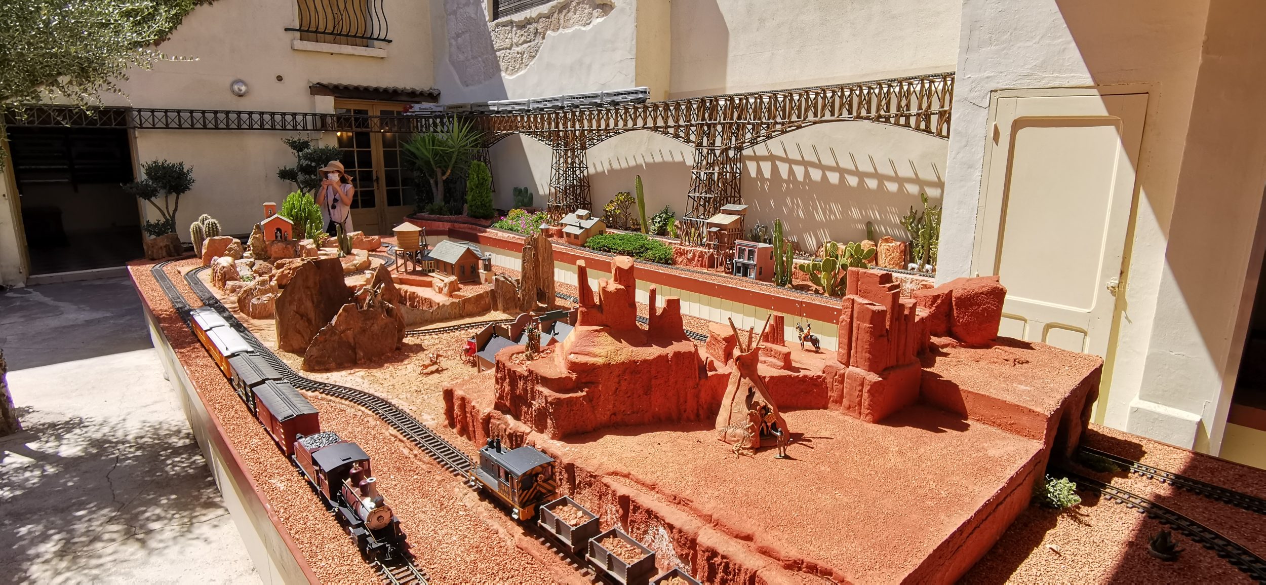 No hay ruidos de trenes en el patio porque eso enojaría a los vecinos. Sin embargo, hay muchos pequeños detalles que observar: los personajes de Tintín escondidos aquí y allá, las luces rojas de las locomotoras, las casas perfectamente decoradas, las estaciones muy bien hechas.