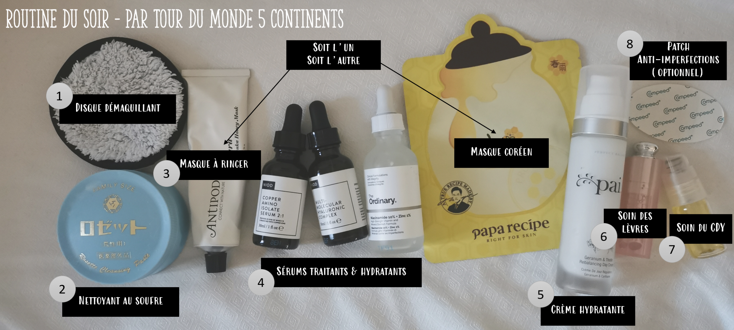 Nota: hay algunos productos en esta rutina que tengo que terminar porque los compré caros, pero hay mejores en el mercado (lo especifico cada vez). Opta por la versión que prefieras, la idea es dar una rutina con el tipo de productos a utilizar. No es necesario utilizar los mismos productos. Cada piel es diferente