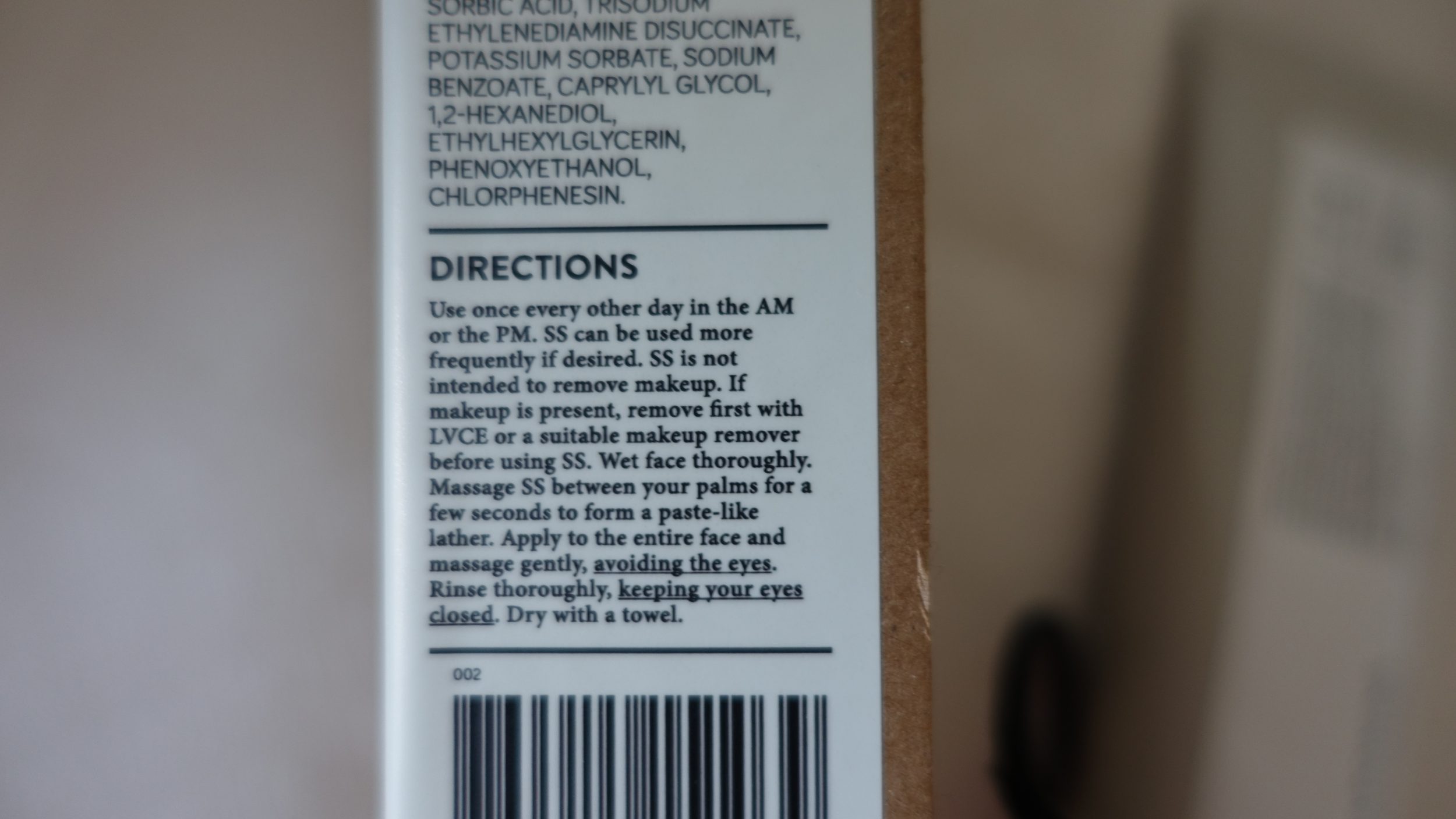 Pero la segunda vez, la dejé en mi cara durante 5 minutos y la experiencia es completamente diferente. Cuando aclaro el producto, todavía queda una película en la piel, que no me parece desagradable, y la textura del limpiador también es un poco diferente. No sé exactamente qué ha pasado porque no noto absolutamente nada en la piel (ni estiramientos ni hormigueos), pero realmente hay una diferencia entre «aclarar rápidamente» y «dejar actuar 5 minutos»