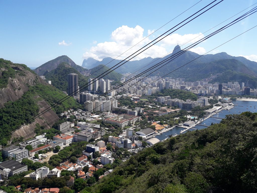 Nos deja un Uber (7 reales en Uber Pool, más barato que un autobús urbano) frente al teleférico. 76 reales/persona después, tomamos el teleférico hasta la primera parada.