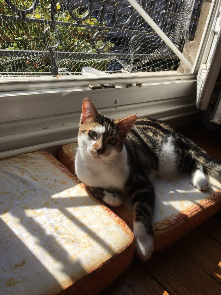 Después de 3 días en el infierno, finalmente me pongo en cuclillas en casa de mi hermana, que se va de vacaciones durante 2 semanas. Así que soy responsable del cuidado de dos gatos: Rosalie (que es mi gata de hecho) y Sushi. Vamos a pasar 2 semanas de mimos y ronroneos con estas dos bolas de pelo, mientras JB pasa su tiempo en el Sur con su abuela