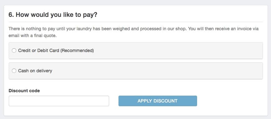 - Con tarjeta, en cuyo caso se cargará en su tarjeta cuando recojan y pesen su ropa