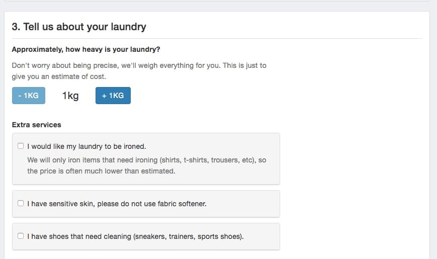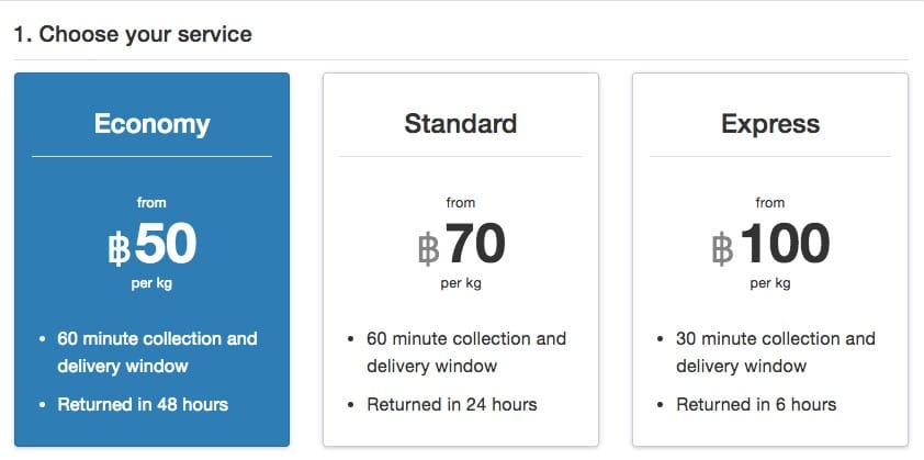 Es un poco más caro que los servicios que encontrarás en la ciudad (unos 40 baht por kg), pero es el precio que pagas por la recogida y la vuelta a casa.