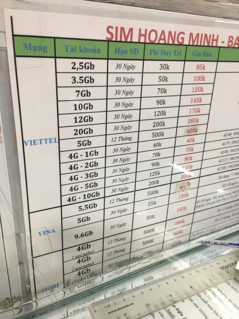 Si no vas a estar mucho tiempo, no te metas en la cabeza. Coge algo que esté marcado como «xxx ngày» (ngày = día. xxx es el número de días de estancia en Vietnam).