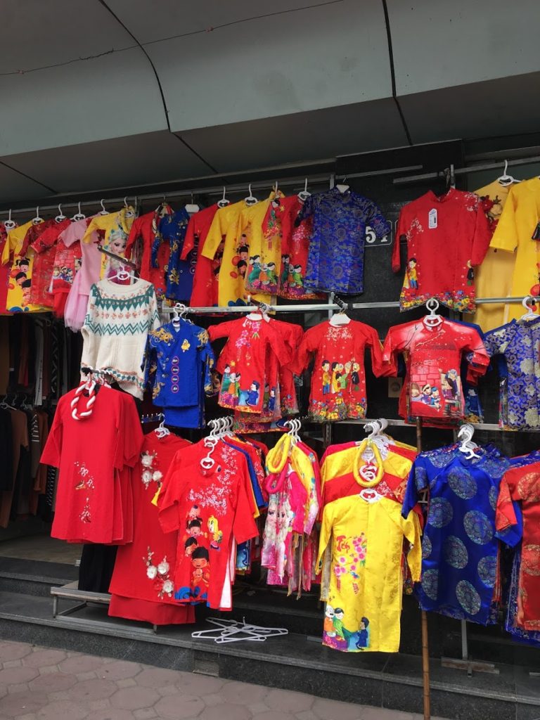 Foto: trajes tradicionales vietnamitas a la venta en todas partes en Ha Noi antes del año nuevo