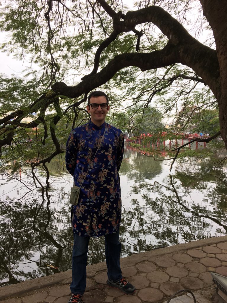 No hay muchos templos famosos en Hanoi. El templo de Ngoc Son, que se encuentra en una pequeña isla en el corazón del restaurado Lago de la Espada, es uno de ellos. Todo el mundo va allí para desear felicidad y suerte a sus familiares. Todo el mundo se disfraza, y nosotros también. JB está especialmente guapo con su traje tradicional – versión moderna.