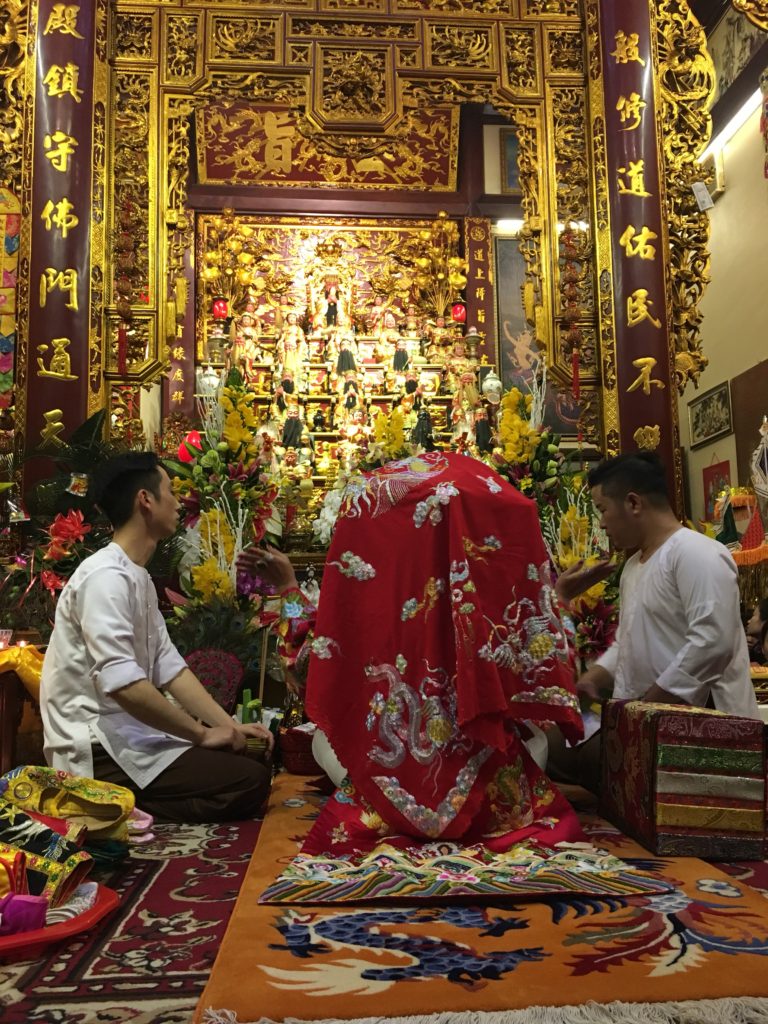amanismoEl octavo día del Año Nuevo Lunar, mi madre es invitada a una sesión de chamanismo, denominada Lên ₫ồng, una herencia religiosa perteneciente al culto de la Santa Madre. Este culto tiene varios nombres, y la rama a la que pertenece este chamán está formada principalmente por comerciantes extremadamente ricos.