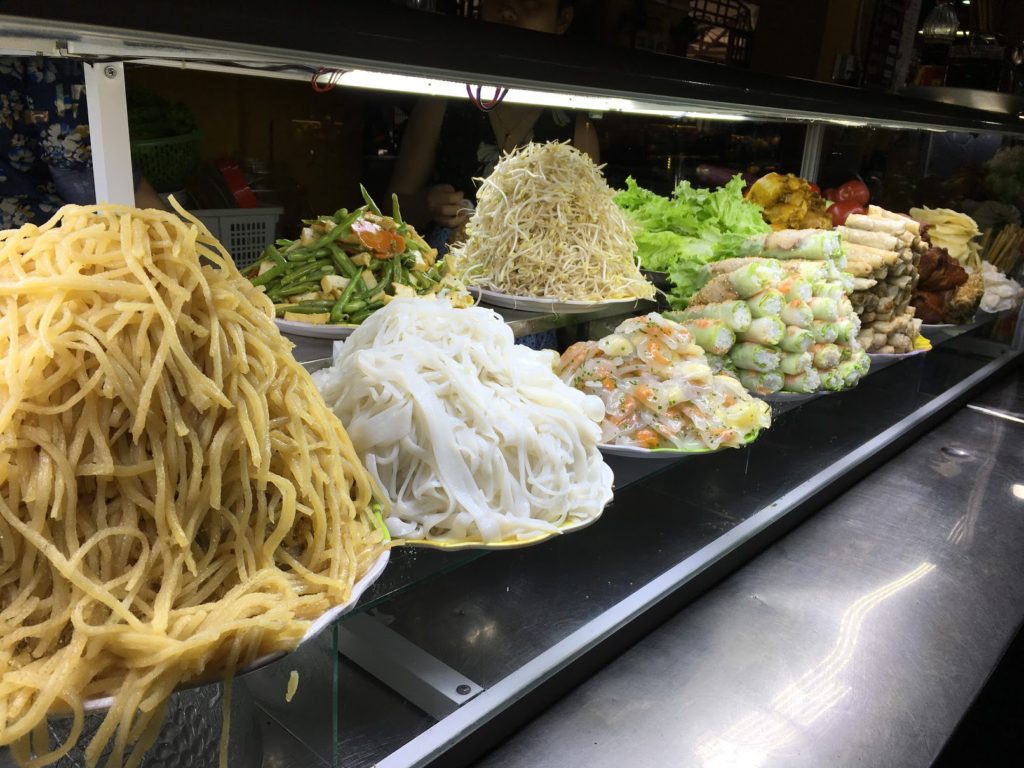 Hemos comprobado todas las direcciones conocidas de extranjeros y vietnamitas. Casi me muero en el acto en las direcciones conocidas por los extranjeros porque era muy mala, así que la fama no es necesariamente una garantía de calidad. En Hoi An, los platos más famosos son Cao Lau (fideos de cerdo), Banh Hoa Hong (rosa blanca), Bun Thit Nuong (fideos y cerdo a la barbacoa), Thit nuong (cerdo a la barbacoa) y Com Ga (arroz con pollo).
