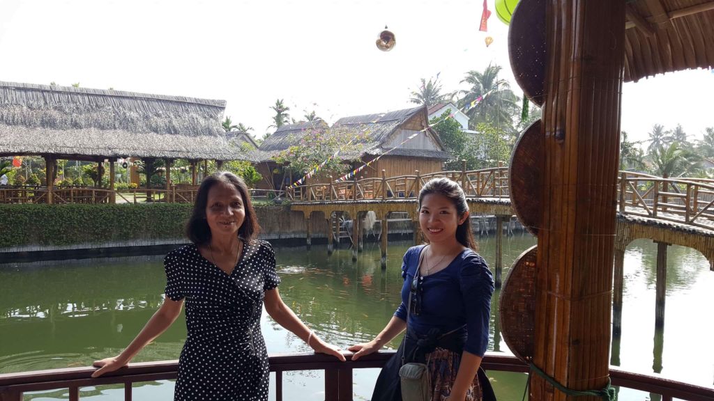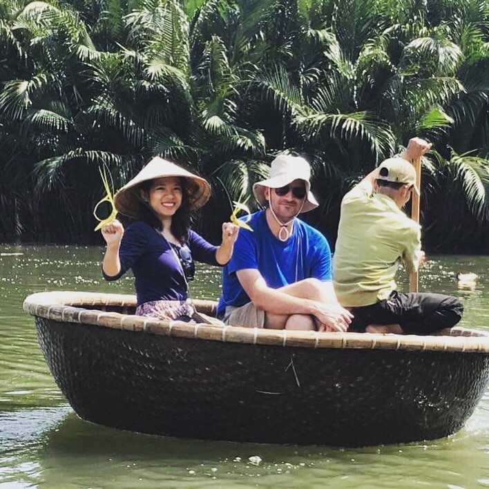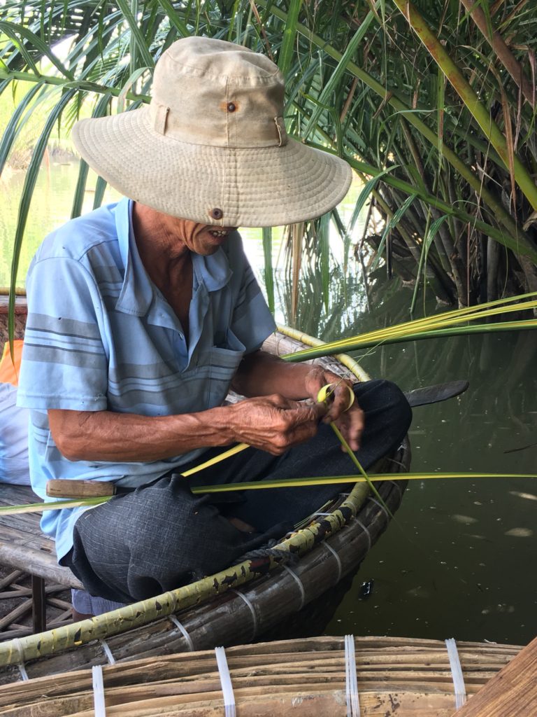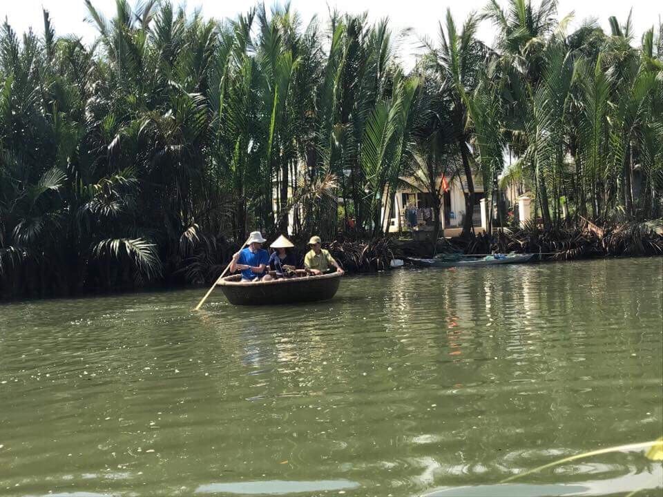 Como mis padres nos visitan en Hoi An, alquilamos dos motos para ir a Coconut Village (también accesible en moto). Nos detenemos en «Destinos ecoturísticos Coconut» (teclear en Google Maps) y descubrimos un lugar cálido, muy «campiña vietnamita» con diferentes actividades (barco, pesca, clases de cocina…)