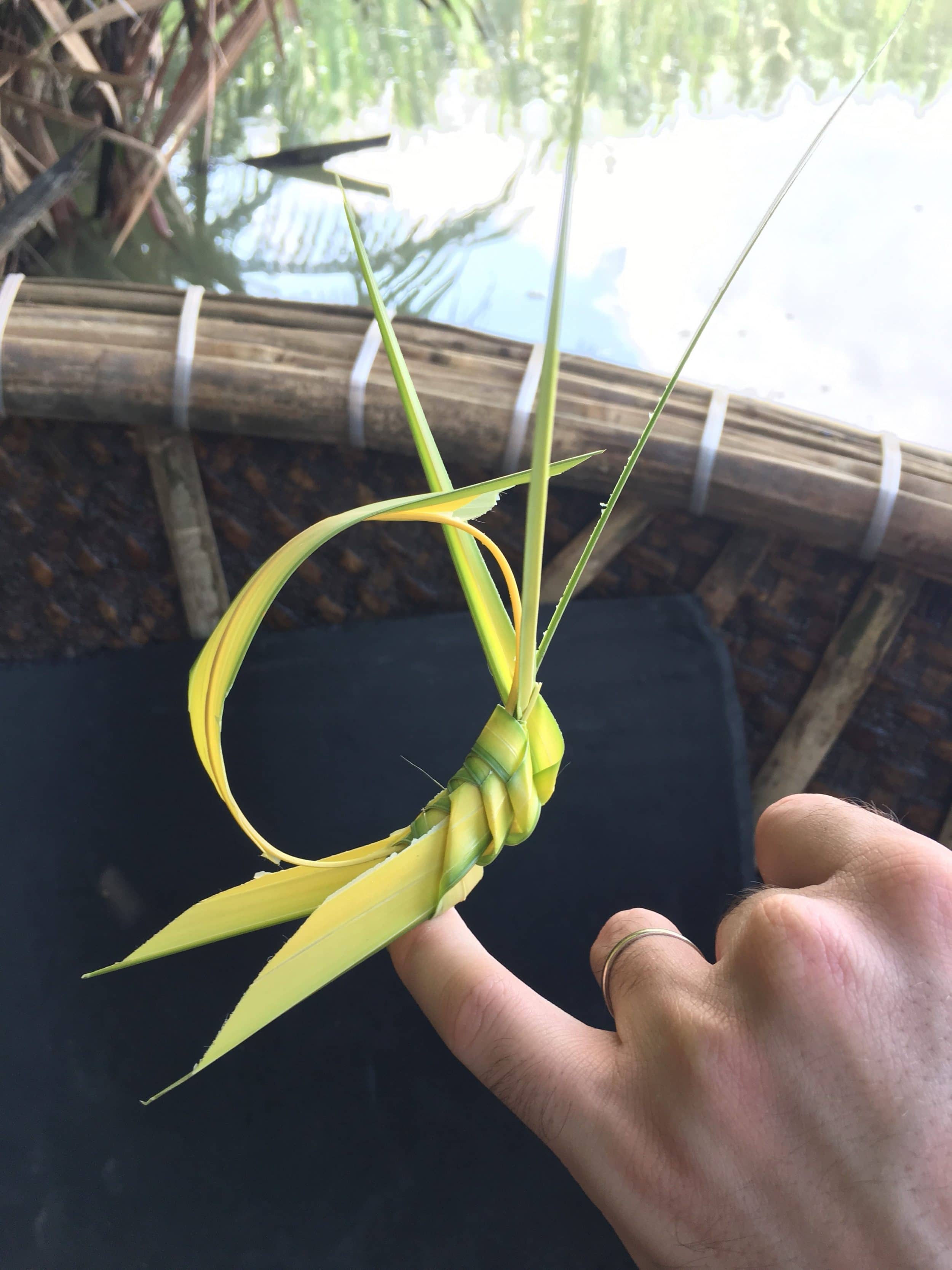 Luego, a partir de una hoja joven, hacen anillos en forma de langostas (todo esto está incluido en el precio).