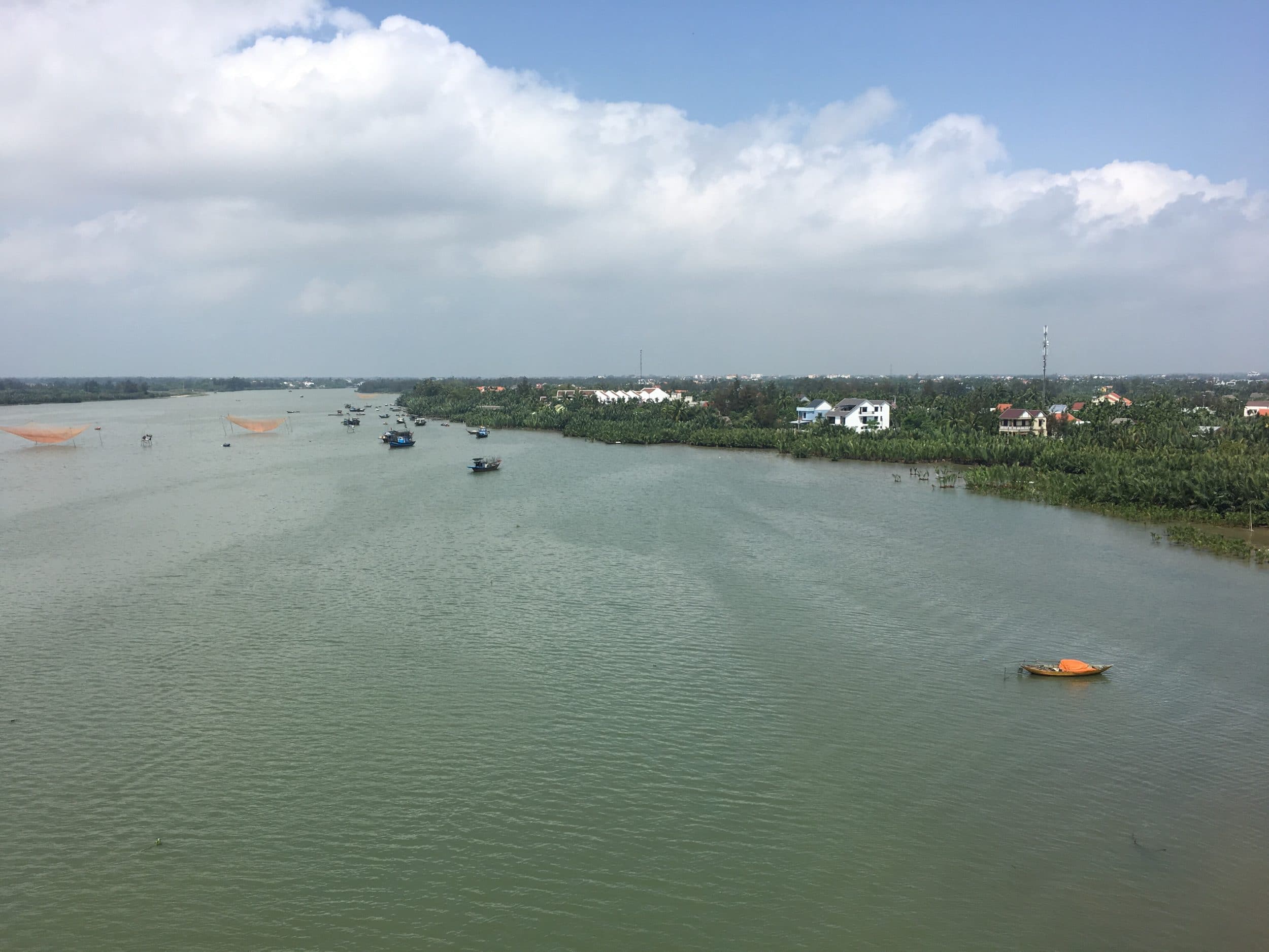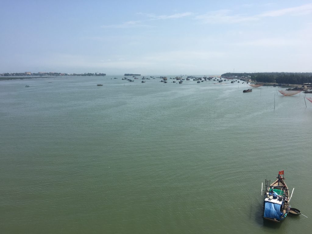 Después de Cam Thanh (pueblo de los cocos), cogemos la moto para ir a ver el océano. Para ello, cruzamos el puente de Cua Dai (escribe Cầu Cửa Đại en Google Maps), a un lado vemos el río y un trozo de Hoi An.