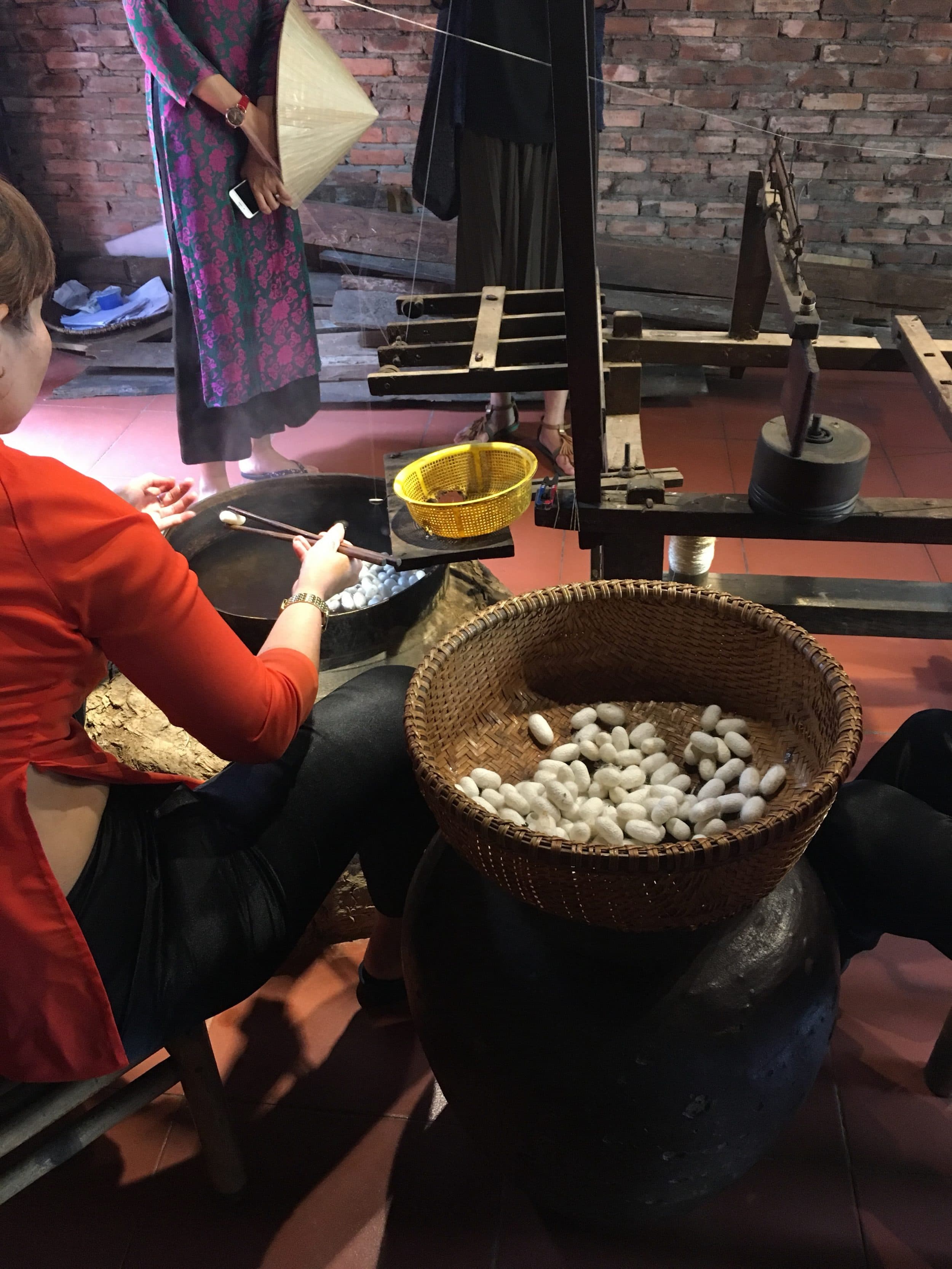 Volvemos a Hoi an para ir a la Aldea de la Seda (se llama Aldea pero es un taller vinculado a un hotel) – escribe Aldea de la Seda en google maps. Este lugar tiene una parte de tienda y otra de taller. Si se quiere visitar con un guía, hay que pagar la visita, de lo contrario es gratis.