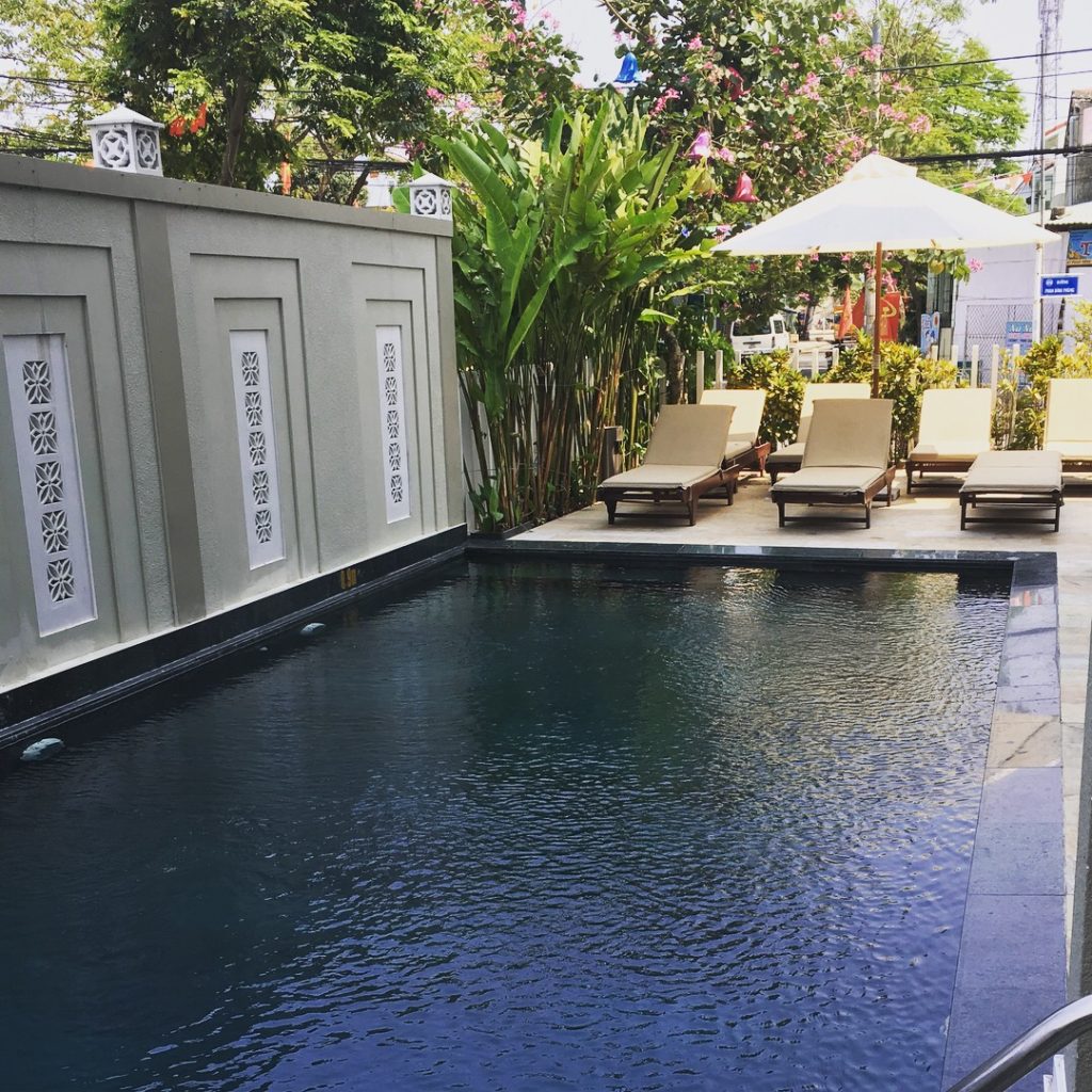 Para el máximo confort y un servicio extraordinario, recomendamos el hotel donde pasamos un mes Manzana verde con desayuno buffet libre, piscina, transporte gratuito al centro de la ciudad y a la playa, bicicletas gratuitas y servicio de lavandería (por peso, 40.000VND/kg). Está a sólo 5-10mn en bicicleta del casco antiguo. Para los nómadas digitales, es el lugar perfecto con servicios adaptados (larga mesa de trabajo en la habitación, fibra óptica, descuento para largas estancias)