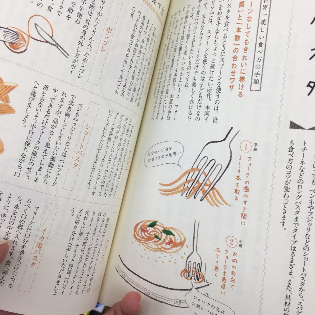 Así que, obviamente, me interesaban los libros un poco femeninos. Y me encontré con este libro en la etiqueta en Europa, que enseña a comer pasta, pain au chocolat… ¡Qué bonito!
