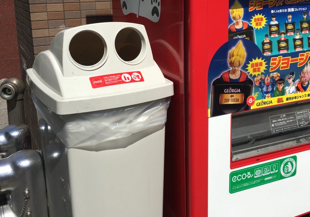 Nota: en Japón, en la calle, no vimos ningún cubo de basura para los residuos domésticos, sólo cubos reservados para latas y botellas (está marcado en inglés, o los agujeros son redondos). Lleva la basura encima y tírala cuando llegues a casa (airbnb, hotel).