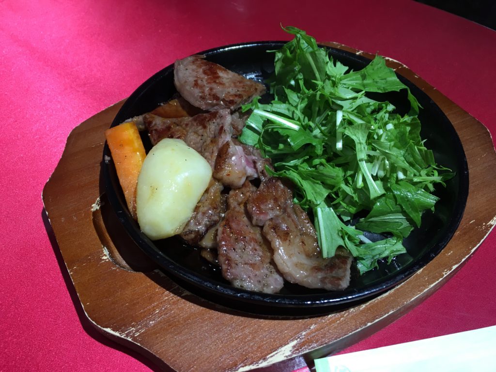 Como no hay mucho espacio para la cría de vacuno, la carne de vacuno es muy, muy cara en Japón y Corea del Sur. Iremos a Kobe para degustar la carne de Kobe allí (y pagaremos unos 100€/persona por una comida). Por ello, la calidad de la brocheta de carne de Kobe de hoy es muy tranquilizadora 😀