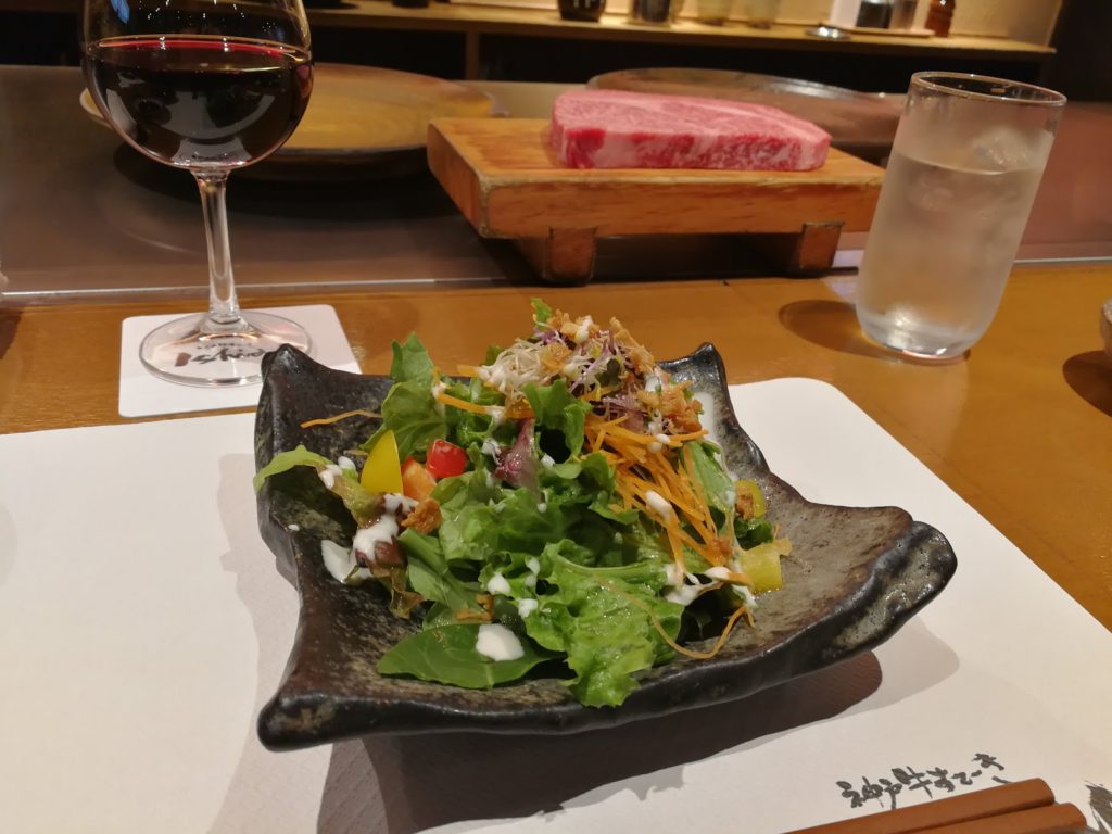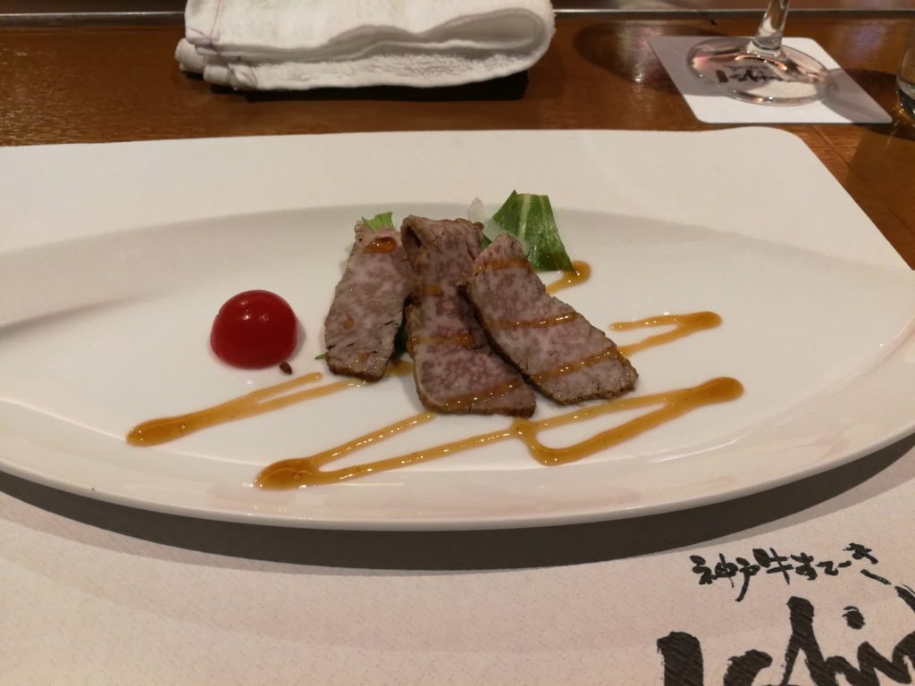 La carne de Kobe es tierna y deliciosa. Se deshace en la boca. No encuentro ese sabor a «nuez» del que hablaba la gente, pero realmente es una carne de muy buena calidad. La grasa de la carne no es vergonzosa, no es como morder un trozo de pura grasa, le da a la carne ese lado tierno. Sin embargo, al tener bastante grasa, 150 gramos de carne de vacuno son suficientes