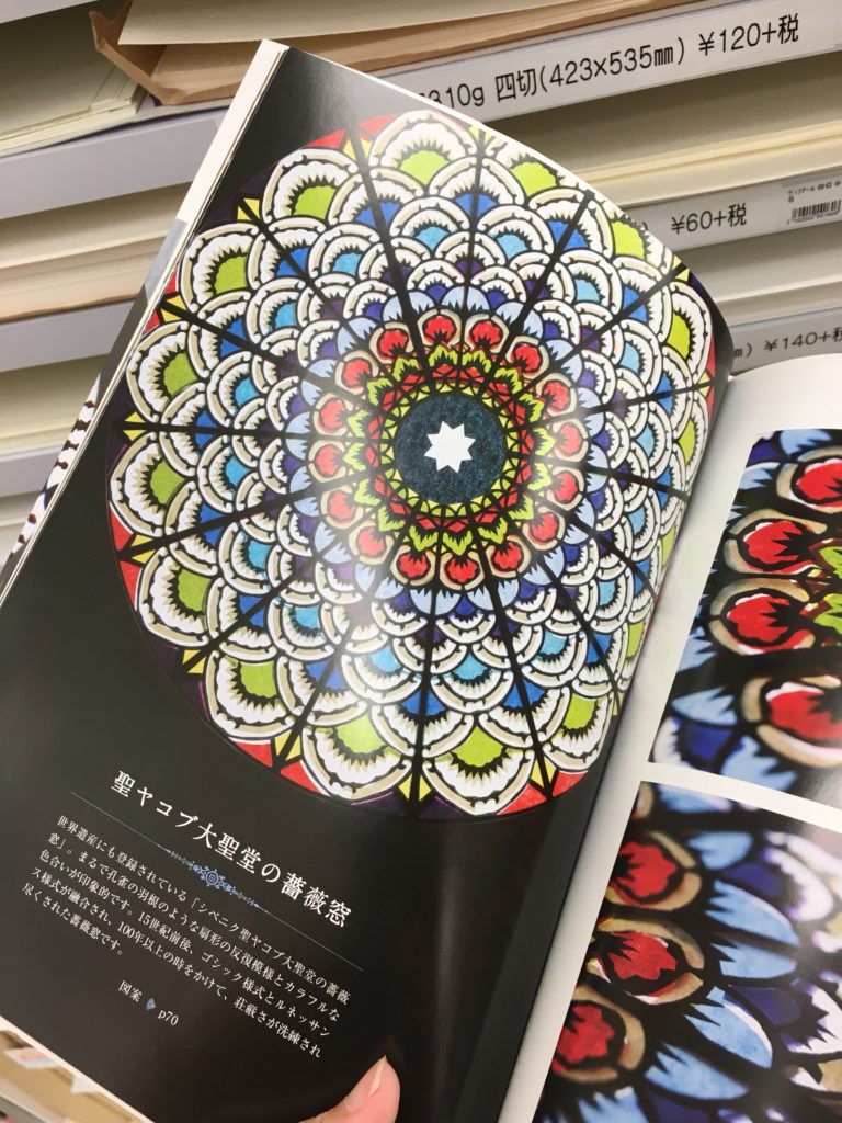 El segundo libro que se me quedó grabado fue el de Nakayama Maki. Parecen ventanas de catedral, pero hechas de papel de seda japonés. Recorta diferentes patrones con papeles de distintos colores y júntalos para formar los «rosetones».