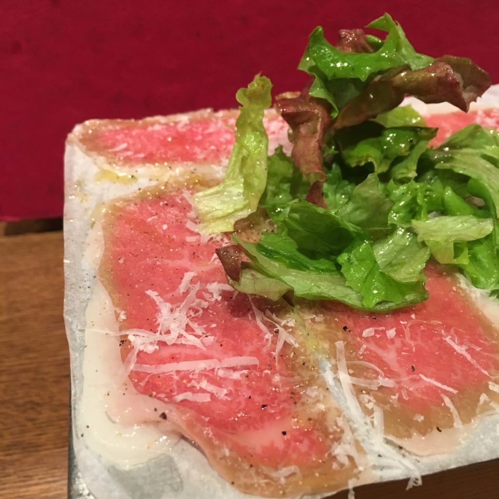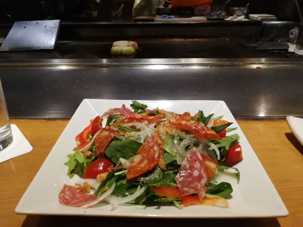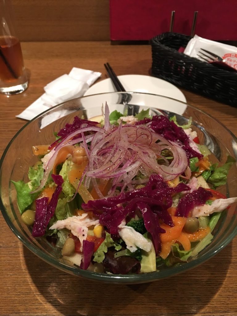 Además, el carpaccio está para morirse, y la ensalada está tan bien condimentada que me tomé una gran ensalada después para satisfacer mi necesidad de verduras (me parece que en Japón no comemos suficientes verduras)