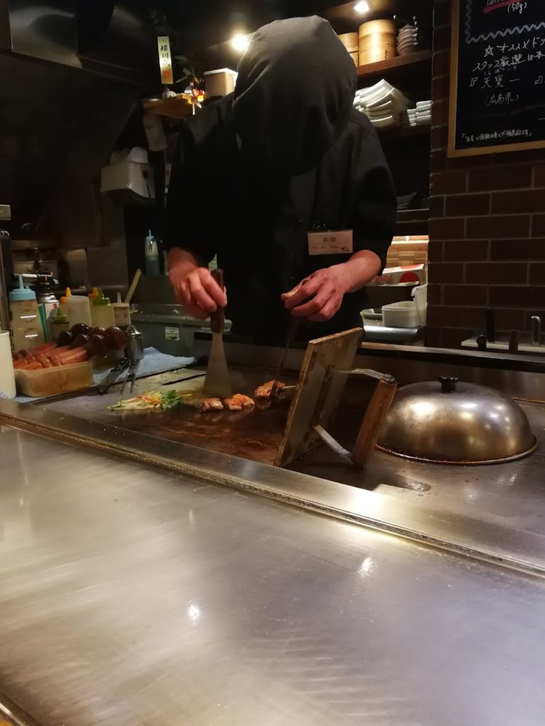 Me olvidé de tomar una foto de este gran trozo de carne de ternera teppanyaki (¡la carne de ternera japonesa está de muerte!). Aquí está el chef preparándolo para mí