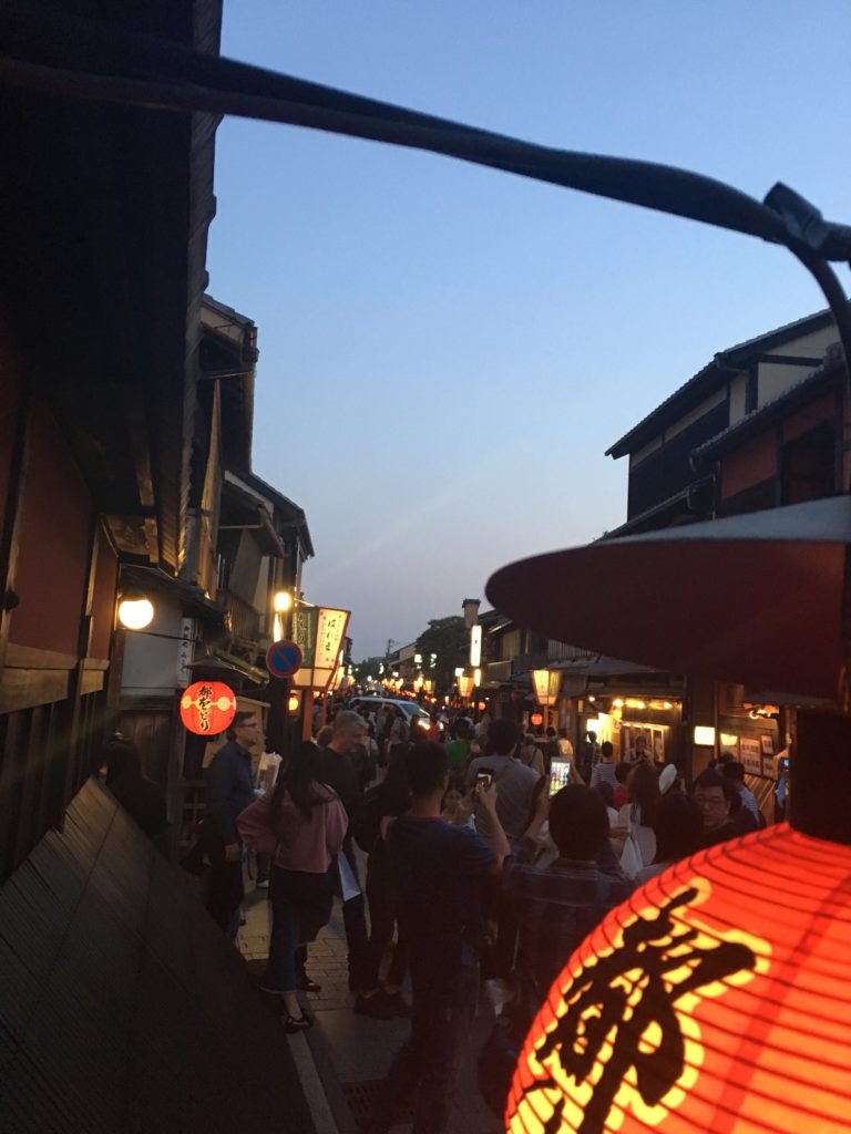 …porque todos los turistas esperan a las geishas aquí… en la calle Gionmachi Minamigawa. Entre los faroles, los taxis que vienen a recoger a las geishas… ohlala no me gustaría ser una geisha. Es demasiado caótico
