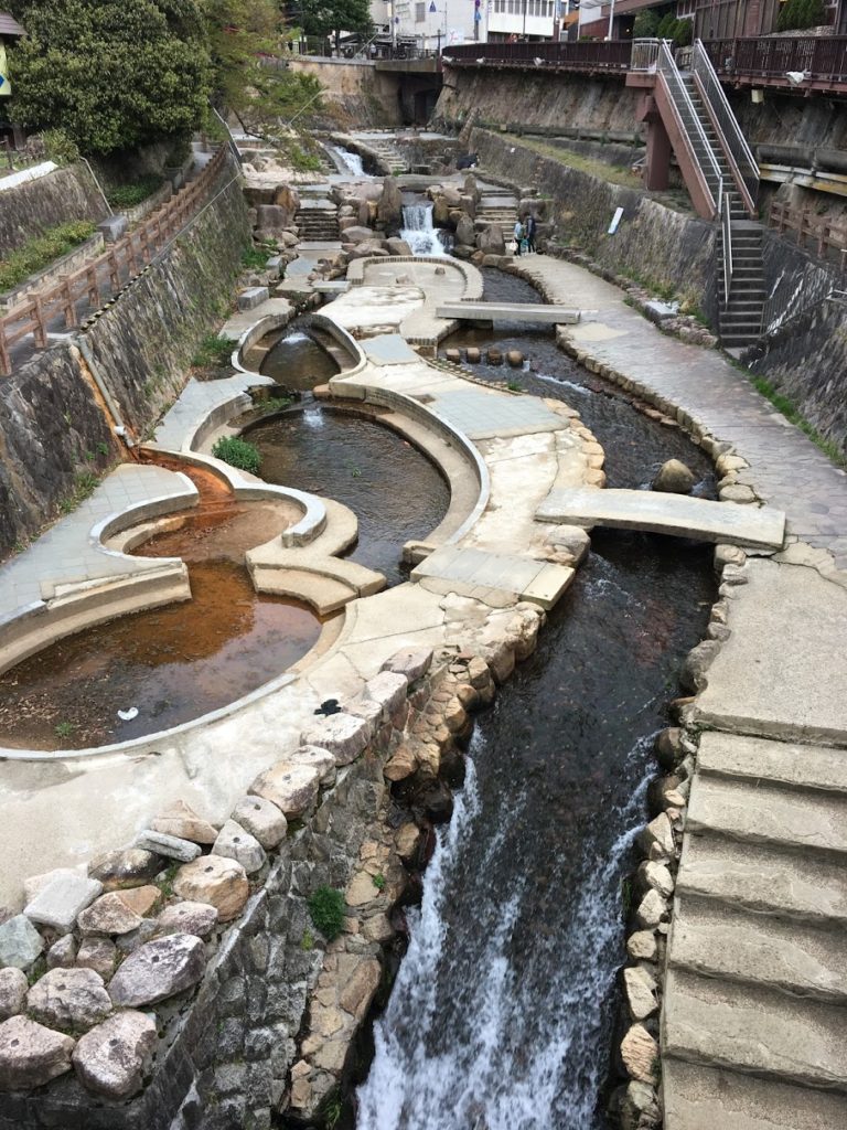 Arima Onsen es conocido por las virtudes medicinales de sus dos baños termales. La primera es rica en hierro. Tiene el apodo de Kinsen, «agua termal dorada», el agua es de color marrón. La segunda es normal, y apodada Ginsen «agua termal de plata». Hay diferentes onsens en esta ciudad, algunos sólo tienen uno de los dos manantiales, así que fuimos a Taiko Hot Spring, que tiene dos manantiales.