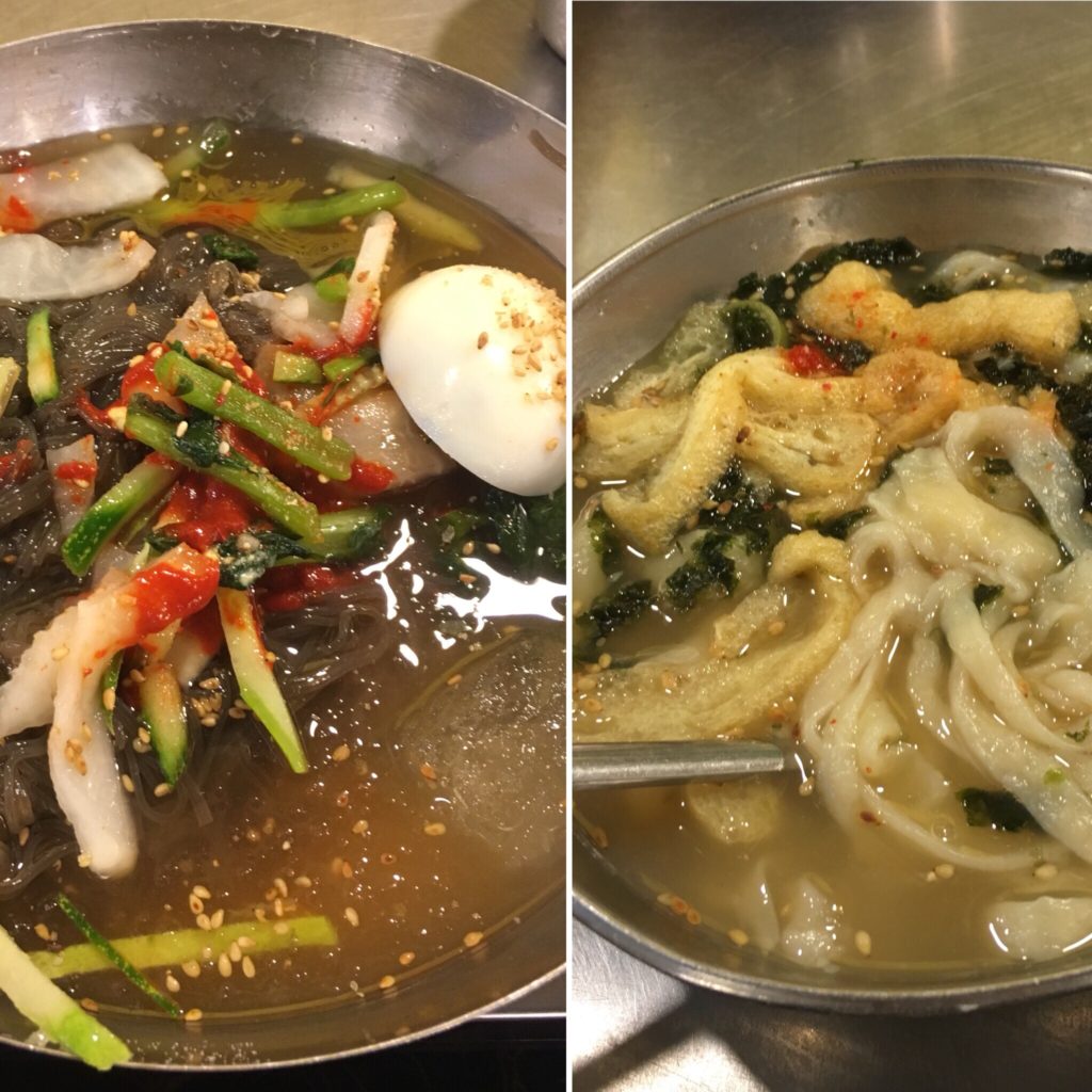Pues bien, los fideos fríos (a la izquierda) tienen como extra un gran cubito de hielo para mantenerlos frescos. Sabe a ensalada tailandesa de fideos y creo que es la primera comida coreana que encuentro realmente buena. Y viene con una pequeña sopa de fideos casera (derecha). Esto significa que por 6000won (unos 4,5€), no sólo me como mi ración, sino que además queda la mitad de cada plato. Todas las vendedoras publican aquí un extracto del periódico sobre ellas, o una foto de su aparición en la televisión. ¡Es súper bonito!
