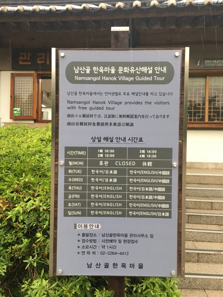 Luego vamos a la aldea Namsangol Hanok, a una estación de distancia… y descubrimos que también hay visitas guiadas gratuitas. Probablemente volveremos otro día