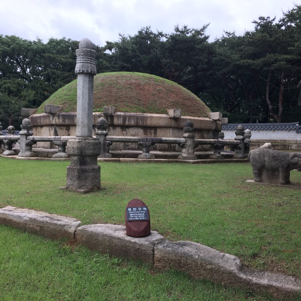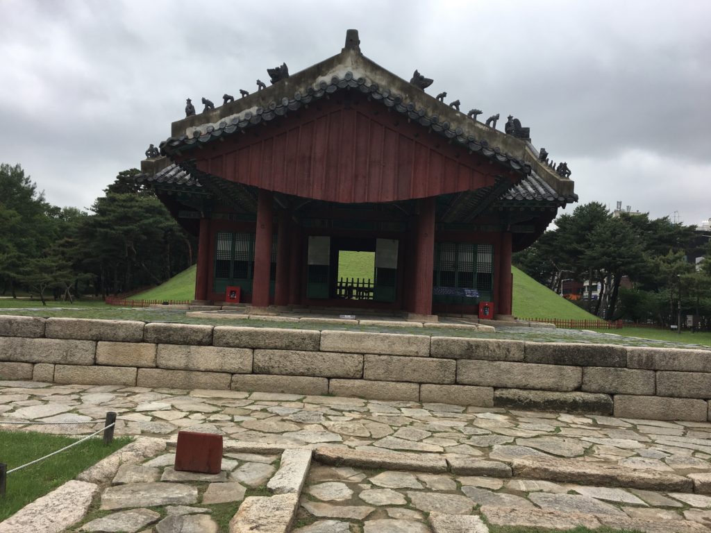 Como la tumba del rey Jeongneung está más cerca de la taquilla, la visitamos primero. Su tumba se encuentra en la colina, detrás de este edificio de madera que sólo se utiliza para realizar rituales