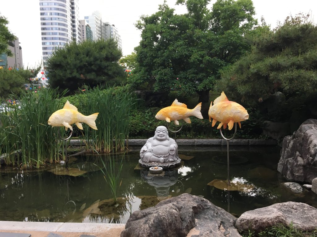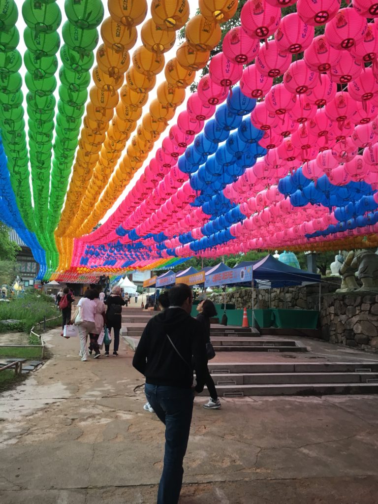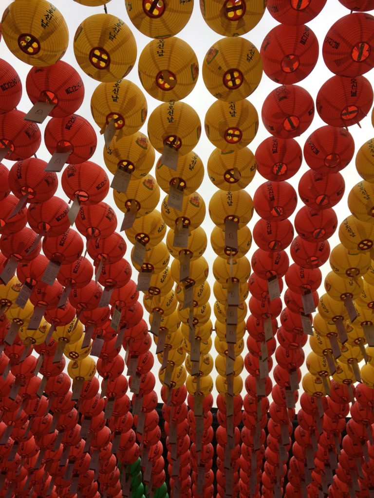 Finalmente llegamos al templo de Bongeunsa, abierto las 24 horas del día. El cumpleaños de Buda ya ha pasado, pero los faroles hechos para la ocasión siguen ahí