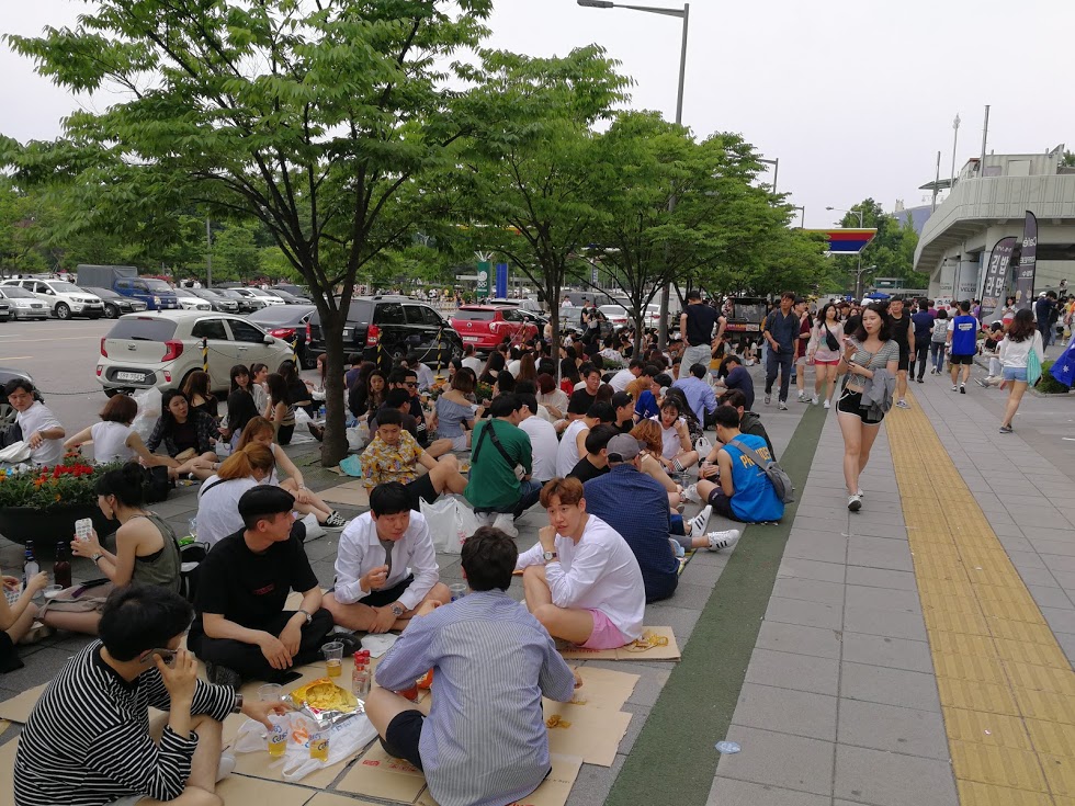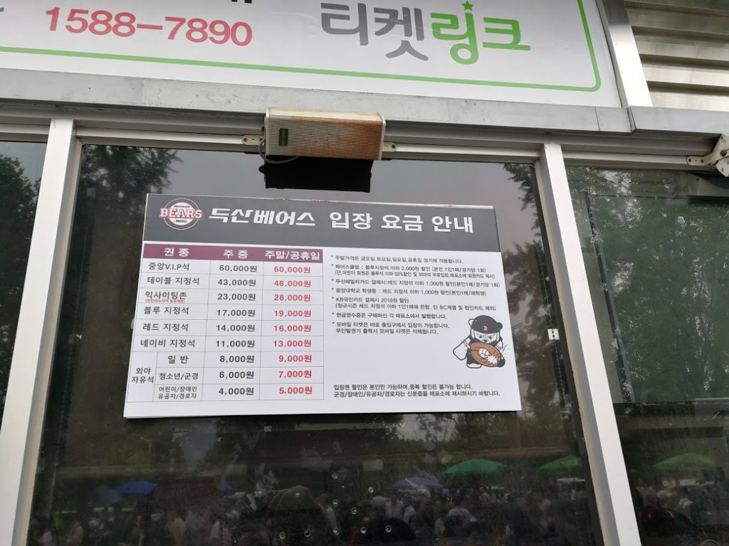 Así que me encuentro con un billete del sector verde, los peores asientos con un precio muy modesto de 9.000 won