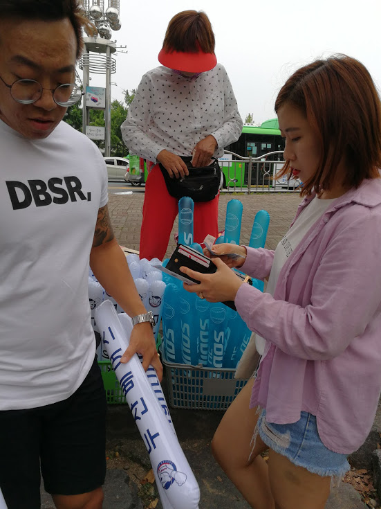 Para poder participar, me compro «fichas de plástico» (2000 won) para poder hacer ruido y participar en el ambiente