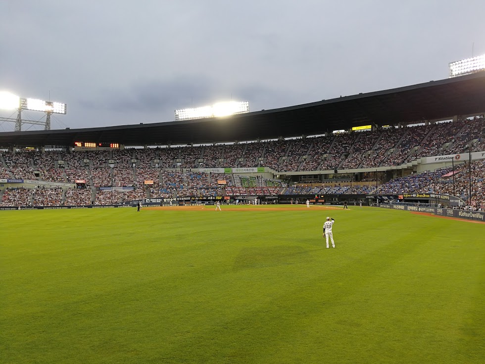 Empieza el partido y para alguien como yo que está descubriendo este deporte, hay que reconocer que es bastante aburrido. El béisbol es un deporte muy lento y con poca acción. Entiendo mejor por qué vienen con tanta comida y bebida, es para pasar el rato ^^