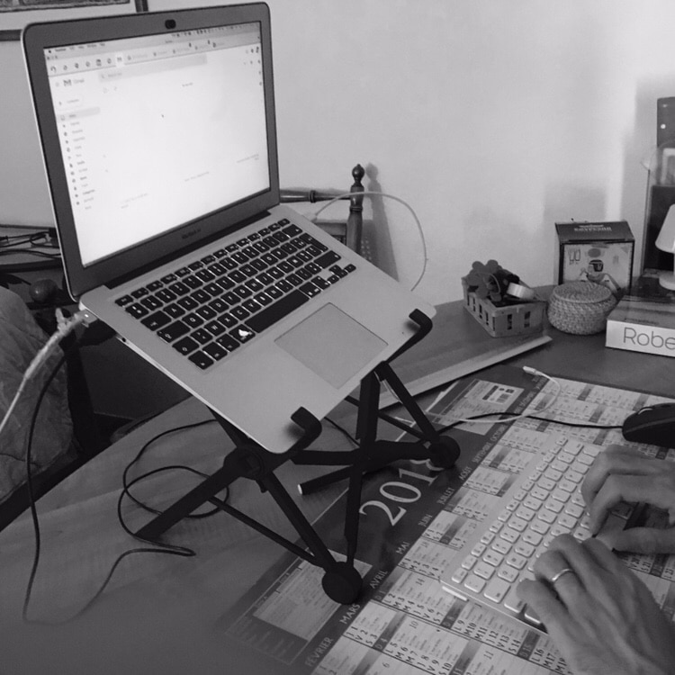 Es opcional, pero si pasas muchas horas delante del ordenador, lo disfrutarás. Un soporte de ordenador (plegable y ligero), para poner la pantalla a la altura de los ojos, le hará menos daño a la espalda y al cuello. Esta es la solución elegida por JB (Nexstand Foldable Adjustable Laptop Stand Notebook Holder. with Apple Magic Keyboard).